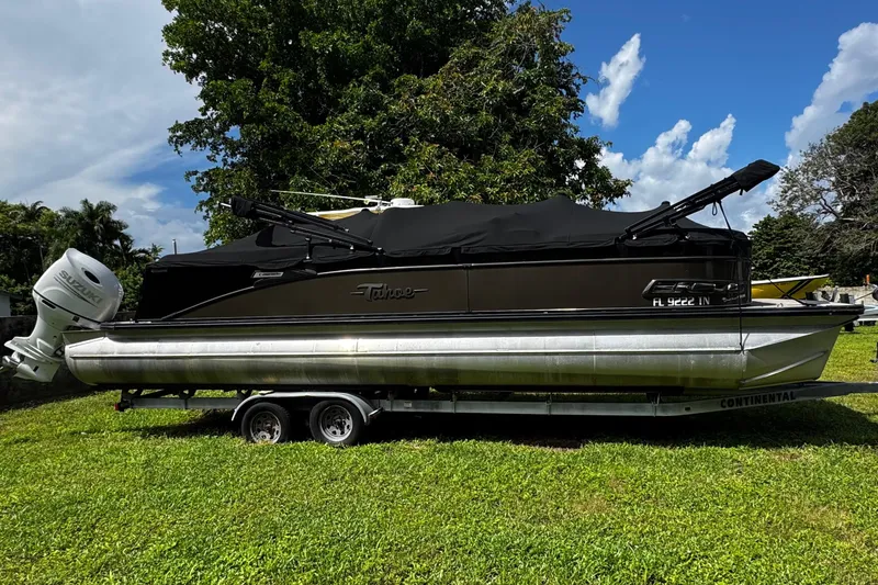 2023 Tahoe Tritoon Cascade Platinum Edition 2585 w/ Rare Twin Engine Option ( Only 277 Hours w/ Warranty) Only one on the market with Twins! Nice Dual Axle Continental Trailer Included in Sale.