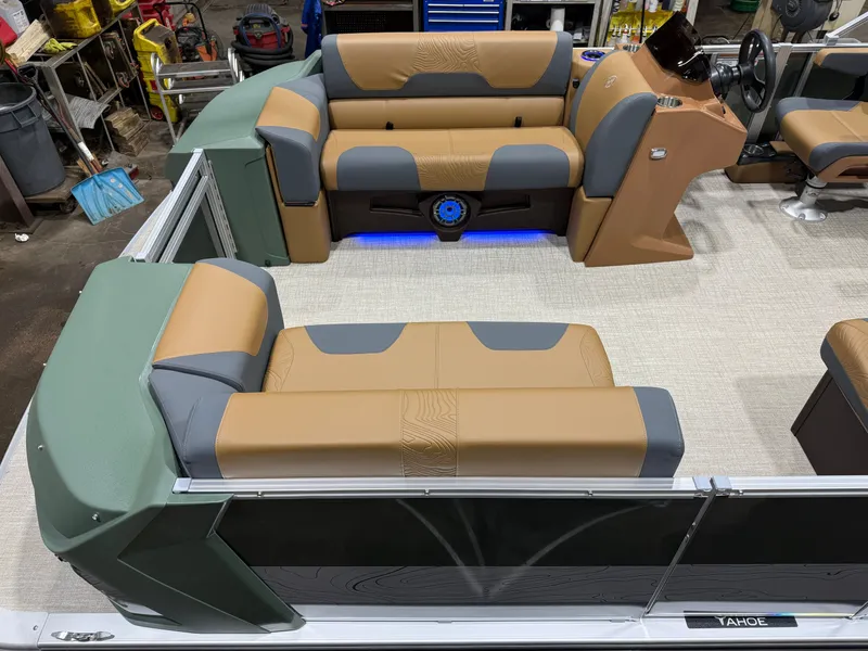 2026 Tahoe GEOfish 2385 Rear Fish Tritoon Pontoon & Honda 4-Stroke EFI. This 23' Sage Green Tri-Toon Has Front Bench Seating w/Storage (1 Chaise Lounge), Portside Chaise Lounge Seat w/Storage, Sport High Back Reclining Captain's Seat, 2 Sport Low Back Fishing Seats In Aft, Built-In Sink, Huge Rear Livewell, Starboard & Portside Side Storage w/Rod Holders, Built-In Tackle Storage, Mooring Cover, Bluetooth Fusion Radio w/4 Speakers, Garmin 52SV GPS Depth Finder, USB Input w/AUX, Manual Dual Battery Selector, Cognac Interior Package w/Koolfab Charcoal Accent, Sport Performance Package, Hydraulic Tilt Steering, Aluminum Undersheeting, Lifting Strakes, Riptide Vinyl Flooring, Bow USB Charging Port, Brushed Bronze Cladding, Blue Ice Package (Interior Mood Lighting, Lighted Speakers & Cup Holders), Rear Stainless Steel Ladder, 25" Tubes, 38 Gallon Gas Tank, 10' Bimini, GEOfish Docklights, Slate Graphics, Sage Corner Modules, Ski Tow Bar, Multiple Cup Holders, NAV Lights. Rated For 12 People. Great Space In This Fish/Cruise Pontoon. Honda 200HP 4-Stroke EFI - $58,995 10 Year Warranty With Tahoe 5 Year Non-Declining Warranty With Honda Trailer Is Not Included In Sale Price, But Trailer Is Available For Sale Don't Be Fooled With Additional Fees @ Closing, Our Price, Plus Tax & License, Includes Freight, Rigging, Battery, Prop, Ect.... Call For More Details Financing Available OAC Call Boat World @ 763-434-9655 - Stock #7969200 For More Information And To See Many More New Pontoons Visit www.boatworldmn.com All Factory Rebates Included In Sale Price