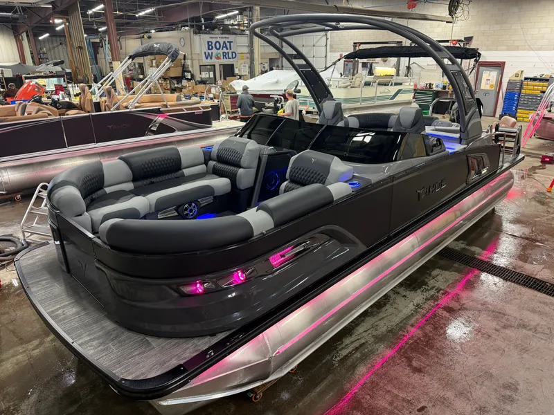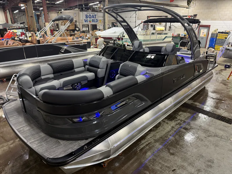 Contact Boat World MN about 2026 Tahoe Grand Tahoe 400HP Elite Windshield 2585 Tritoon Mercury V10