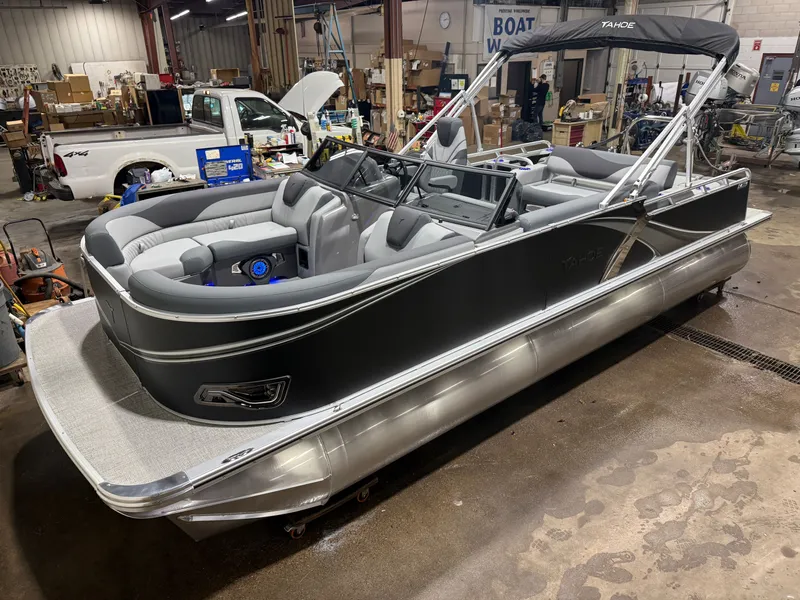 2026 Tahoe LTZ 2385 Versatile Rear Bench (VRB) Windshield Swingback Tri-Toon Pontoon & Honda 4-Stroke EFI. This 23' Pontoon Has Front Chaise Lounge Seating With Storage, Reclining High-Back Admiral Captain Chair Seat, Full Windshield, Wrap Around Seating That Turns Into A Bed Or Rear/Front Bench Seating, Graphite Vinyl Seats w/Koolfab Black, Rear Swim Deck, Lifting Strakes, Hydraulic Steering w/Tilt, Aluminum Undersheeting, Riptide Vinyl Flooring, LTZ Platinum Edition Package (Ultra Fine Vinyl Upgrade, Garmin 52CV GPS Depth Finder, SST Pull-Up Cleats, LED Smoked Chrome Docklights, Polished Corner Caps, SST Vent Covers, Platinum Edition Special Badging), Blue Ice Package (Interior Mood Lighting, Lighted Cup Holders, Lighted Speakers) Ski Tow Bar, Mooring Cover, Built-In 38 Gallon Gas Tank, Greywood Rectangle Table, Bluetooth Fusion Radio w/6 Speakers, Amp, Multiple Cup Holders, 25" Tubes, Bimini Top, Bow & Aft USB Charging Ports, New Battery, Manual Battery Selector, Lillipad Easy Step Ladder, Gated Aft, Smoked Chrome Logos, Graphite Interior Package, Front USB Charging Port Cubby Built Into Front Of Helm, Side Storage Behind Captain's Seat, Front Deck. Rated For 12 People. Honda 115HP 4-Stroke EFI - $49,995Honda 140HP 4-Stroke EFI - $51,995Honda 150HP 4-Stroke EFI - $52,995Honda 200HP 4-Stroke EFI - $56,995 Don't Be Fooled With Additional Fees @ Closing. Our Price, Plus Tax & License, Includes Freight, Rigging, Battery, Prop, Etc.... Trailer Is Not Included But Available For Use Or Purchase. 5 Year Warranty With Honda 10 Year Warranty With Tahoe Financing Available OAC All Factory Rebates For Boat And Motor Included In Price Call Boat World @ 763.434.9655 - Stock #7949 To Learn More And See More New Pontoons Visit Us @ www.boatworldmn.com Tahoe Pontoons are built by Avalon and Tahoe Manufacturing in Alma Michigan