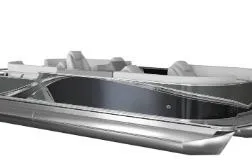 A Mercury 200L FourStroke combined with the Sport Performance Package gives this pontoon smooth acceleration and confident control. The 25” center tube, lifting fins, aluminum undersheeting, and Uflex Masterdrive Power Assist Steering provide a responsive, easy-to-drive experience for summer cruising and docking.