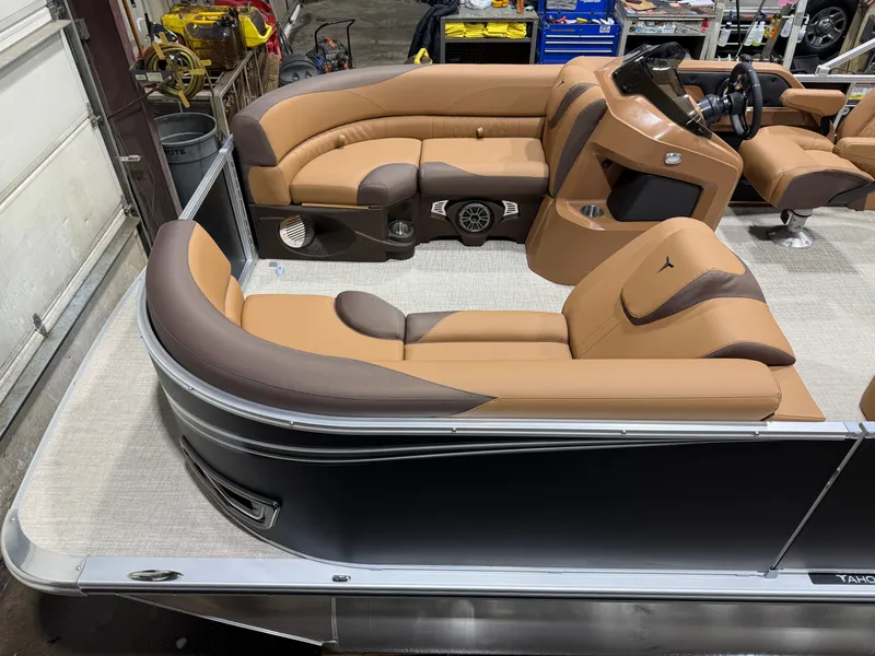 2026 Tahoe LTZ 2385 Versatile Rear Lounger (VRL) Pontoon Powered By Honda. This 23' Pontoon Has Front Lounge Seating With Storage, Admiral Reclining Captain's Chair, Versatile Rear Lounge Seating With Storage & Built In Speakers, Gated Aft, Riptide Vinyl Flooring, Cognac Interior Package, LTZ Platinum Package (LED Chrome Smoked Docklights, Polished Corner Caps, Garmin 52CV GPS Depth Finder, Pull Up Cleats, Vent Covers For Cladding), Gauge Package w/Hour Meter, Bimini Top, New Battery, Mooring Cover, Side Storage Behind Captain's Chair, Built-In Gas Tank, Multiple Cup Holders, Helm Side Storage, Fusion Bluetooth Radio w/6 Speakers & Amp, Lillipad Easy Step Ladder, Tilt Steering, Bow & Aft USB Charging Ports, Front And Rear Deck, New Battery, On/Off Battery Switch, Brushed Bronze Seat Cladding. Rated For 11 People. Honda 40HP 4-Stroke EI - $38,995 Honda 60HP BFP 4-Stroke EFI - $40,495 Honda 90HP 4-Stroke EFI - $42,495 Honda 100HP 4-Stroke EFI - $42,995 Honda 115HP 4-Stroke EFI - $43,995 Trailer Not Included But Available For Use Or Purchase 10 Year Bow To Stern Warranty With Tahoe 5 Year Non-Declining Warranty With Honda Don't Be Fooled With Additional Fees @ Closing, Our Price, Plus Tax & License, Includes Freight, Rigging, Battery, Prop, Etc.... Financing Available OAC All Factory Rebates Included In Sale Price Call For More Details - Stock #7991 Call Boat World @ 763-434-9655 For More Information And To See Many More New And Used Pontoons Visit www.boatworldmn.com Tahoe Pontoons are built by Avalon and Tahoe Manufacturing in Alma Michigan