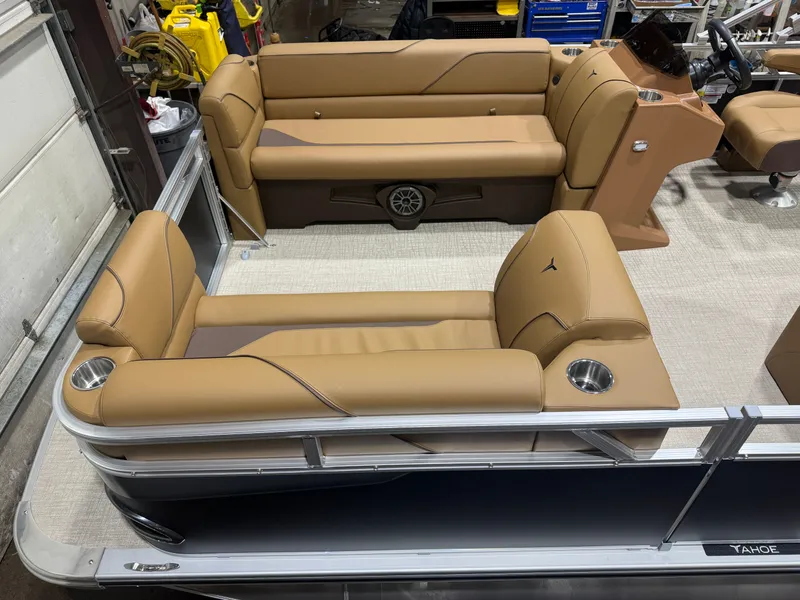 2026 Tahoe Sport 1980 Cruise Rear Bench Pontoon & Honda 4-Stroke EFI. This Pontoon Has Great Chaise Lounge Seating Up Front With Storage, Wrap Around Chaise Lounge Seating With Storage, Mid Back Reclining Commander Captain's Chair, Cognac Interior Package w/Expresso Accent, Rear Facing Bench Seat w/Storage, Fusion Bluetooth Radio, Built In 25 Gallon Gas Tank, Table, Multiple Cup Holders, Adjustable 10' Bimini Top, Sport Platinum Package (Garmin 52CV GPS Depth Finder, LED 90 Degree Smoked Chrome Docklights, Polished Corner Caps, Platinum Edition Special Badging), Built-In Trash Can, Ladder, Brushed Bronze Cladding, New Battery And Prop, On/Off Battery Switch, Mooring Cover, Riptide Vinyl Floor, Front And Rear Deck, 25" Tubes, LED NAV Lights, Smoked Chrome Logos, Tilt Steering, Bow USB Charging Port, Gauge Package w/Hour Meter. Rated For 10 People. Honda 40HP 4-Stroke EFI - $28,995 Honda 60HP 4-Stroke EFI - $30,495 Honda 90HP 4-Stroke EFI - $32,495 Trailer Is Not Included But Available For Use Or Purchase. Don't Be Fooled With Additional Fees @ Closing, Our Price, Plus Tax & License, Includes Freight, Rigging, Battery, Prop, Ect.... 10 Year Warranty With Tahoe 5 Year Non-Declining Warranty With Honda Financing Available OAC All Factory Rebates Included In Sale Price Call Boat World @ 763-434-9655 - Stock #7034 For More Information And To See Many More New Pontoons Visit www.boatworldmn.com Tahoe Pontoons are built by Avalon and Tahoe Manufacturing in Alma Michigan