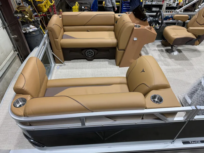 2026 Tahoe Sport 2180 Versatile Rear Bench (VRB) Swingback Pontoon & Honda 4-Stroke EFI. This 21' Platinum Edition Pontoon Has Front Chaise Lounge Seating With Storage, Upgraded Commander Reclining Captain's Chair, Wrap Around Chaise Lounge Seating With Storage, Seating That Turns Into A Bed Or Rear Facing Bench Seating, Sport Platinum Edition (Garmin 52CV GPS Depth Finder, Polished Corner Caps, 90 Degree LED Docking Lights, Platinum Edition Special Badging), Rear Swim Deck, Riptide Vinyl Flooring, Greywood Rectangle Table, Mooring Cover, Built-In 25 Gallon Gas Tank, Fusion Bluetooth Radio, Multiple Cup Holders, 25" Tubes, 10' Bimini Top, Gated Aft, Cognac Interior Package, Bow & Aft USB Charging Ports, Ladder, Battery On/Off Switch, Tilt Steering, Smoked Chrome Logos, Built-In Trash Can, Side Storage Behind Captain's Seat, Front Deck. Rated For 10 People Honda 40HP 4-Stroke EFI - $31,995Honda 60HP BFP 4-Stroke EFI - $33,495Honda 90HP 4-Stroke EFI - $35,495Honda 100HP 4-Stroke EFI - $35,995Honda 115HP 4-Stroke EFI - $36,995 Don't Be Fooled With Additional Fees @ Closing. Our Price, Plus Tax & License, Includes Freight, Rigging, Battery, Prop, Etc.... Trailer Is Not Included But Available For Use Or Purchase. 5 Year Warranty With Honda 10 Year Warranty With Tahoe Financing Available OAC All Factory Rebates For Boat And Motor Included In Price Call Boat World @ 763.434.9655 - Stock #7017 To Learn More And See More New Pontoons Visit Us @ www.boatworldmn.com Tahoe Pontoons are built by Avalon and Tahoe Manufacturing in Alma Michigan