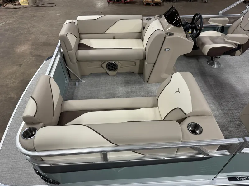 2026 Tahoe Sport 2180 Versatile Rear Bench (VRB) Swingback Pontoon & Mercury Avator. This 21' Sea Mist Walls Platinum Edition Pontoon Has Front Chaise Lounge Seating With Storage, Upgraded Commander Reclining Captain's Chair, Wrap Around Chaise Lounge Seating With Storage, Seating That Turns Into A Bed Or Rear Facing Bench Seating, Sport Platinum Edition (Garmin 52CV GPS Depth Finder, Polished Corner Caps, 90 Degree LED Docking Lights, Platinum Edition Special Badging), Rear Swim Deck, Riptide Vinyl Flooring, Greywood Rectangle Table, Mooring Cover, Built-In 25 Gallon Gas Tank, Fusion Bluetooth Radio, Multiple Cup Holders, 25" Tubes, 10' Bimini Top, Gated Aft, Buckskin Interior Package w/Koolfab Black Vinyl, Bow & Aft USB Charging Ports, Ladder, Battery On/Off Switch, Tilt Steering, Smoked Chrome Logos, Built-In Trash Can, Side Storage Behind Captain's Seat, Front Deck. Rated For 10 People. Mercury Avator 20e - $39,995 Mercury Avator 35e - $41,495 Don't Be Fooled With Additional Fees @ Closing. Our Price, Plus Tax & License, Includes Freight, Rigging, Battery, Prop, Etc.... Trailer Is Not Included But Available For Use Or Purchase. 5 Year Warranty With Honda 10 Year Warranty With Tahoe Financing Available OAC All Factory Rebates For Boat And Motor Included In Price Call Boat World @ 763.434.9655 - Stock #7028 To Learn More And See More New Pontoons Visit Us @ www.boatworldmn.com Tahoe Pontoons are built by Avalon and Tahoe Manufacturing in Alma Michigan