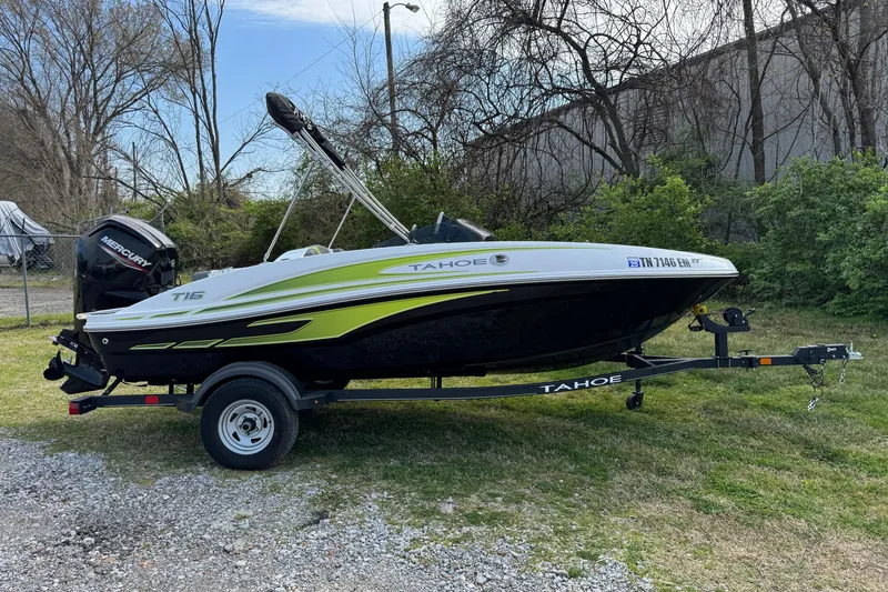 The TAHOE® T16 is fully loaded and priced to deliver huge returns of fun and excitement. A new 7" touchscreen multifunction display is standard and displays your GPS-accurate speed, the water depth, as well as your motor's vitals. Inside, creature comforts abound in the form of twin forward lounges with ample underseat storage, and out back you'll a sun pad and a FourStroke Mercury outboard for spirited and economical performance. Rounding out the package is a custom-built trailer for years of on-road peace of mind.