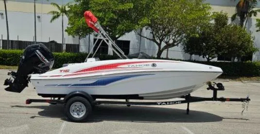 The TAHOE® T16 is fully loaded and priced to deliver huge returns of fun and excitement. A 7" touchscreen multifunction display is standard and displays your GPS-accurate speed, the water depth, as well as your motor's vitals. Inside, creature comforts abound in the form of twin forward lounges with ample underseat storage, and out back you'll find a sun pad and a FourStroke Mercury outboard for spirited and economical performance. Rounding out the package is a custom-built trailer for years of on-road peace of mind.