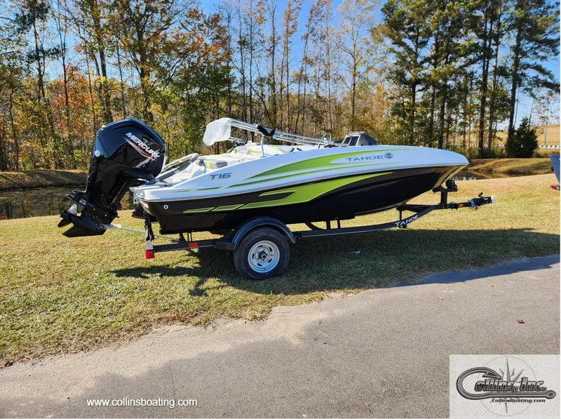 The TAHOE® T16 is fully loaded and priced to deliver huge returns of fun and excitement. A 7" touchscreen multifunction display is standard and displays your GPS-accurate speed, the water depth, as well as your motor's vitals. Inside, creature comforts abound in the form of twin forward lounges with ample underseat storage, and out back you'll find a sun pad and a FourStroke Mercury outboard for spirited and economical performance. Rounding out the package is a custom-built trailer for years of on-road peace of mind.