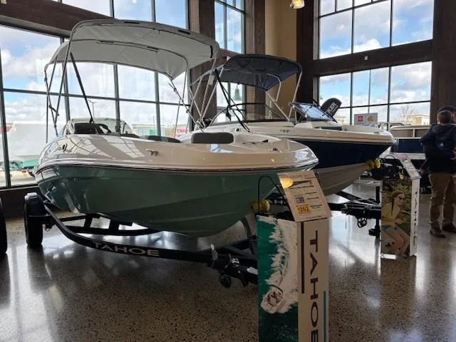 Wade into the world of sport boats with the 2025 TAHOE® T16! This affordable introduction to the TAHOE® family is a 6-passenger sports boat built to perform. Its POWERGLIDE® hull design features HYDROSTEP strakes that deliver exciting and stable riding experiences. Use the 7" TAHOE CRUISE touch screen to monitor GPS-accurate speed, water depth, your motor's vitals, and more. Opt for the available TurboSwing® to prepare your T16 for watersports.
