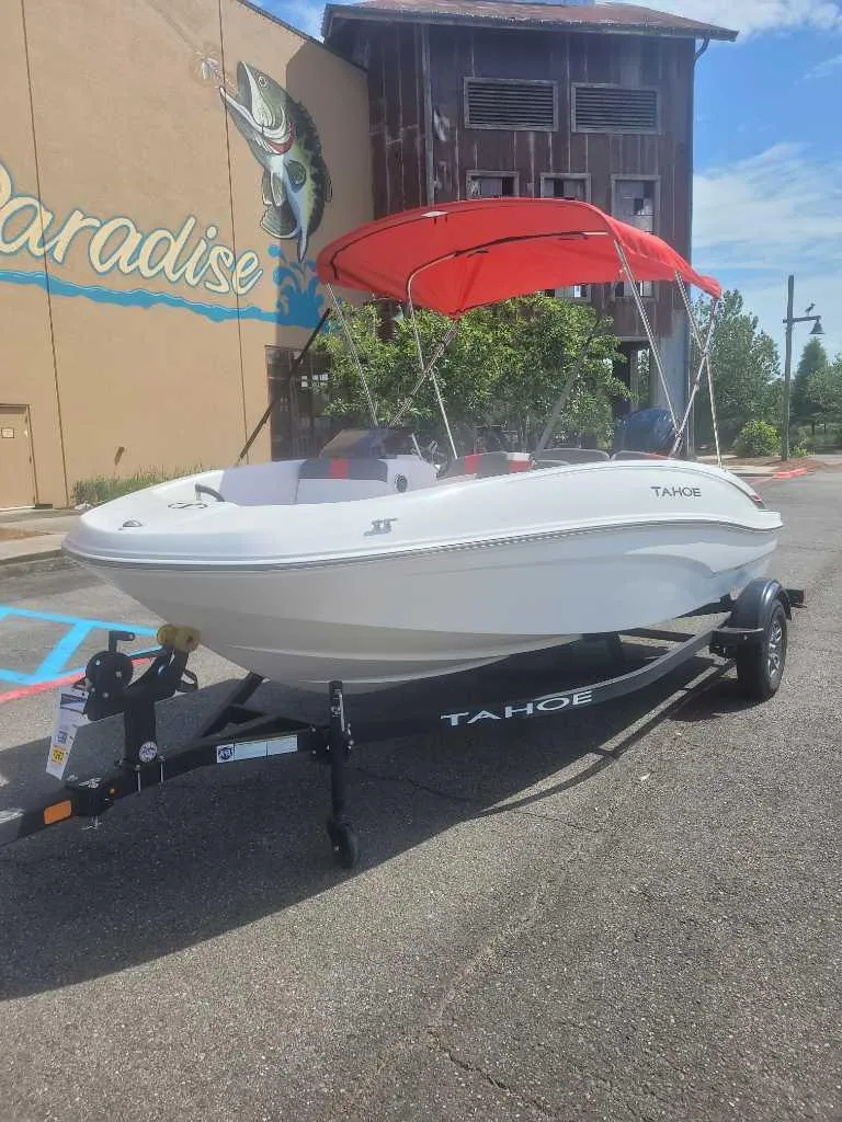 Wade into the world of sport boats with the 2025 TAHOE® T16! This affordable introduction to the TAHOE® family is a 6-passenger sports boat built to perform. Its POWERGLIDE® hull design features HYDROSTEP strakes that deliver exciting and stable riding experiences. Use the 7" TAHOE CRUISE touch screen to monitor GPS-accurate speed, water depth, your motor's vitals, and more. Opt for the available TurboSwing® to prepare your T16 for watersports.