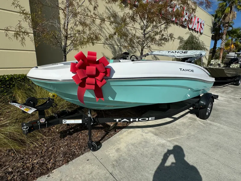 Wade into the world of sport boats with the 2025 TAHOE® T16! This affordable introduction to the TAHOE® family is a 6-passenger sports boat built to perform. Its POWERGLIDE® hull design features HYDROSTEP strakes that deliver exciting and stable riding experiences. Use the 7" TAHOE CRUISE touch screen to monitor GPS-accurate speed, water depth, your motor's vitals, and more. Opt for the available TurboSwing® to prepare your T16 for watersports.