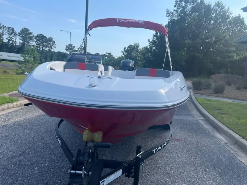 Wade into the world of sport boats with the 2025 TAHOE® T16! This affordable introduction to the TAHOE® family is a 6-passenger sports boat built to perform. Its POWERGLIDE® hull design features HYDROSTEP strakes that deliver exciting and stable riding experiences. Use the 7" TAHOE CRUISE touch screen to monitor GPS-accurate speed, water depth, your motor's vitals, and more. Opt for the available TurboSwing® to prepare your T16 for watersports.