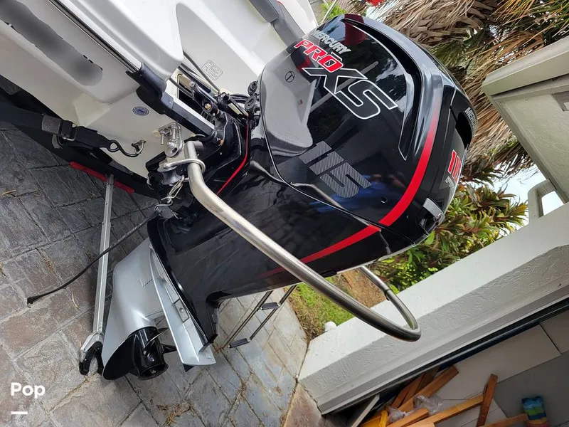 The Mercury 115-horsepower engine has been well-maintained. The boat was recently serviced for the 100-hour interval. At that time, the boat had 80 hours.