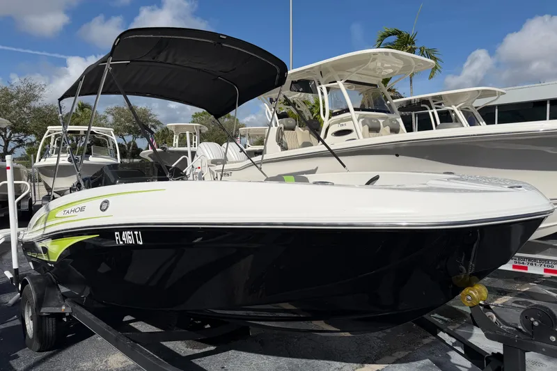 The TAHOE® T18 is a midsize runabout that boasts exciting performance, standout-style, and all-day comfort. From the handcrafted composite construction to the custom seating, the T18 is designed to be a family-fun machine that's ready for cruising sandbar picnic or watersports action. A standard Kicker® stereo and four speakers crank up the tunes while a new 7" touchscreen multifunction display keeps tabs on your outboard, speed and the water depth. Premium accents, ample amenities and guaranteed fun will have you looking for reasons to get to the lake.