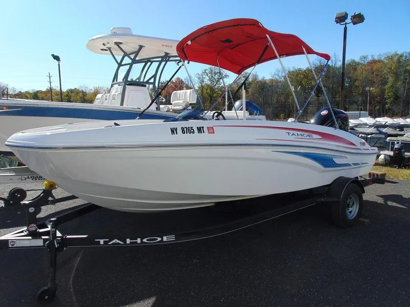 The TAHOE® T18 is a midsize runabout that boasts exciting performance, standout-style, and all-day comfort. From the handcrafted composite construction to the custom seating, the T18 is designed to be a family-fun machine that's ready for cruising sandbar picnic or watersports action. A standard Kicker® stereo and four speakers crank up the tunes while a new 7" touchscreen multifunction display keeps tabs on your outboard, speed and the water depth. Premium accents, ample amenities and guaranteed fun will have you looking for reasons to get to the lake.