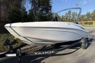 The TAHOE® T18 is a midsize runabout that boasts exciting performance, standout-style, and all-day comfort. From the handcrafted composite construction to the custom seating, the T18 is designed to be a family-fun machine that's ready for cruising sandbar picnic or watersports action. A standard Kicker® stereo and four speakers crank up the tunes while a new 7" touchscreen multifunction display keeps tabs on your outboard, speed and the water depth. Premium accents, ample amenities and guaranteed fun will have you looking for reasons to get to the lake.