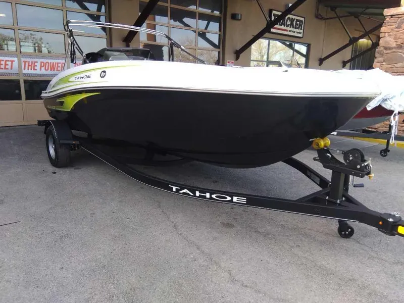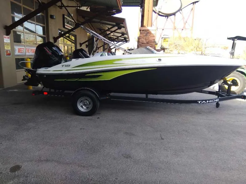 The TAHOE® T18 is a midsize runabout that boasts exciting performance, standout-style, and all-day comfort. From the handcrafted composite construction to the custom seating, the T18 is designed to be a family-fun machine that's ready for cruising sandbar picnic or watersports action. A standard Kicker® stereo and four speakers crank up the tunes while a new 7" touchscreen multifunction display keeps tabs on your outboard, speed and the water depth. Premium accents, ample amenities and guaranteed fun will have you looking for reasons to get to the lake.
