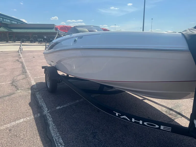 The TAHOE® T18 is a midsize runabout that boasts exciting performance, standout-style, and all-day comfort. From the handcrafted composite construction to the custom seating, the T18 is designed to be a family-fun machine that's ready for cruising sandbar picnic or watersports action. A standard Kicker® stereo and four speakers crank up the tunes while a new 7" touchscreen multifunction display keeps tabs on your outboard, speed and the water depth. Premium accents, ample amenities and guaranteed fun will have you looking for reasons to get to the lake.