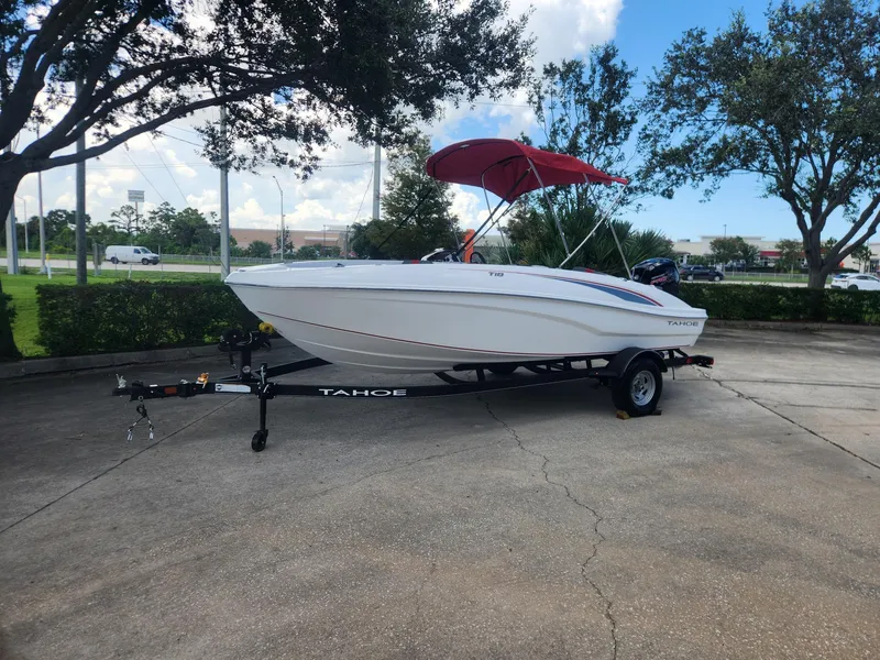 The TAHOE® T18 is a midsize runabout that boasts exciting performance, standout-style, and all-day comfort. From the handcrafted composite construction to the custom seating, the T18 is designed to be a family-fun machine that's ready for cruising sandbar picnic or watersports action. A standard Kicker® stereo and four speakers crank up the tunes while a new 7" touchscreen multifunction display keeps tabs on your outboard, speed and the water depth. Premium accents, ample amenities and guaranteed fun will have you looking for reasons to get to the lake.