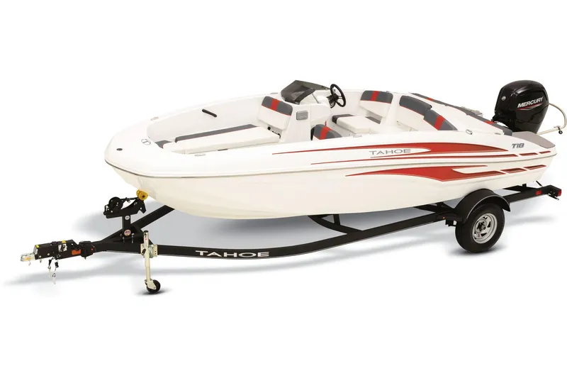 The TAHOE® T18 is a midsize runabout that boasts exciting performance, standout-style, and all-day comfort. From the handcrafted composite construction to the custom seating, the T18 is designed to be a family-fun machine that's ready for cruising sandbar picnic or watersports action. A standard Kicker® stereo and four speakers crank up the tunes while a new 7" touchscreen multifunction display keeps tabs on your outboard, speed and the water depth. Premium accents, ample amenities and guaranteed fun will have you looking for reasons to get to the lake.
