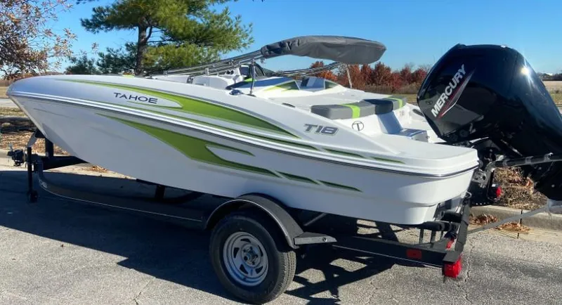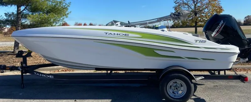 The TAHOE® T18 is a midsize runabout that boasts exciting performance, standout-style, and all-day comfort. From the handcrafted composite construction to the custom seating, the T18 is designed to be a family-fun machine that's ready for cruising sandbar picnic or watersports action. A standard Kicker® stereo and four speakers crank up the tunes while a new 7" touchscreen multifunction display keeps tabs on your outboard, speed and the water depth. Premium accents, ample amenities and guaranteed fun will have you looking for reasons to get to the lake.