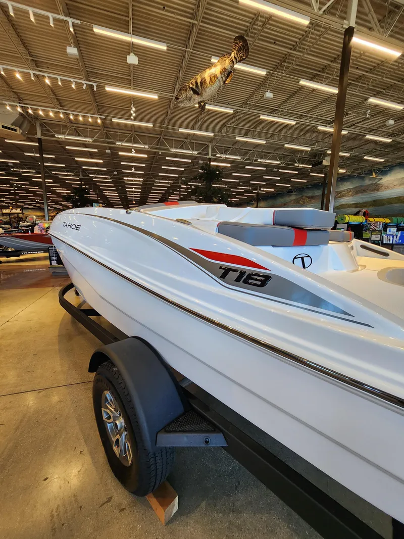 Add some full-throttle excitement to your lake days with the 2025 TAHOE® T18! This 9-passenger midsize runabout boat is built for performance, complete with a POWERGLIDE® hull with HYDROSTEP strakes. The pilot's console features a 7" touch screen that delivers information such as motor vitals, speed, and depth. Play your adventure's soundtrack through the 4-speaker Kicker® stereo as you pull tubes, skiers, and