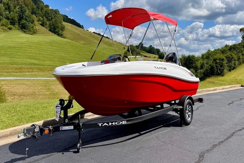 The 2026 TAHOE® T18 comes standard with a 90hp Mercury® ELPT FourStroke outboard motor and has a recommended maximum 115hp rating. This model is packaged with a trailer.