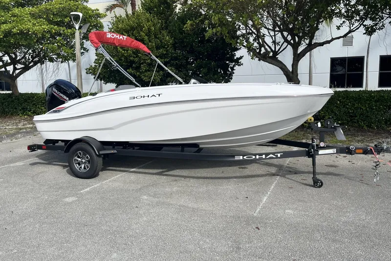 The 2026 TAHOE® T18 comes standard with a 90hp Mercury® ELPT FourStroke outboard motor and has a recommended maximum 115hp rating. This model is packaged with a trailer.