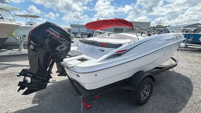 The 2026 TAHOE® T18 comes standard with a 90hp Mercury® ELPT FourStroke outboard motor and has a recommended maximum 115hp rating. This model is packaged with a trailer.