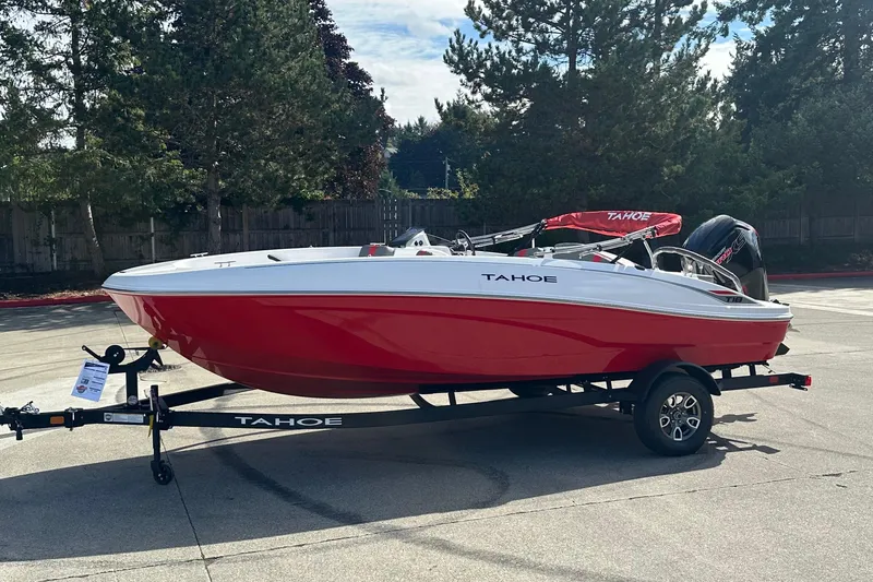 The 2026 TAHOE® T18 comes standard with a 90hp Mercury® ELPT FourStroke outboard motor and has a recommended maximum 115hp rating. This model is packaged with a trailer.