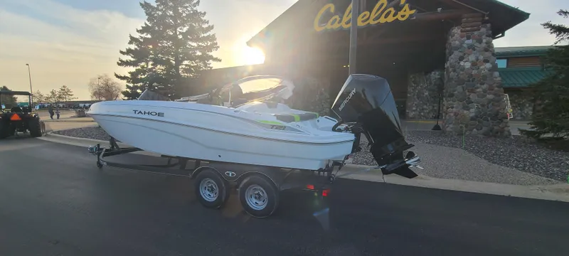 Step into the Tahoe T21, and be amazed. Feel the stability, the power, the smooth coursing of its POWERGLIDE® hull with HYDROSTEP® strakes as you and up to 10 companions fly across the waves. Note the operational ease and efficiency of its TAHOE CRUISE® digital dashboard and switch panel; crank up the KICKER® stereo with Bluetooth® technology. Need some splash time? We've got you covered, with a removable ski tow pylon, anchor locker, aft swim platforms, and telescoping boarding ladder. And of course, you'll find smart storage galore. Enjoy unlimited access to on-the-water fun and convenience, in the exciting new Tahoe T21!