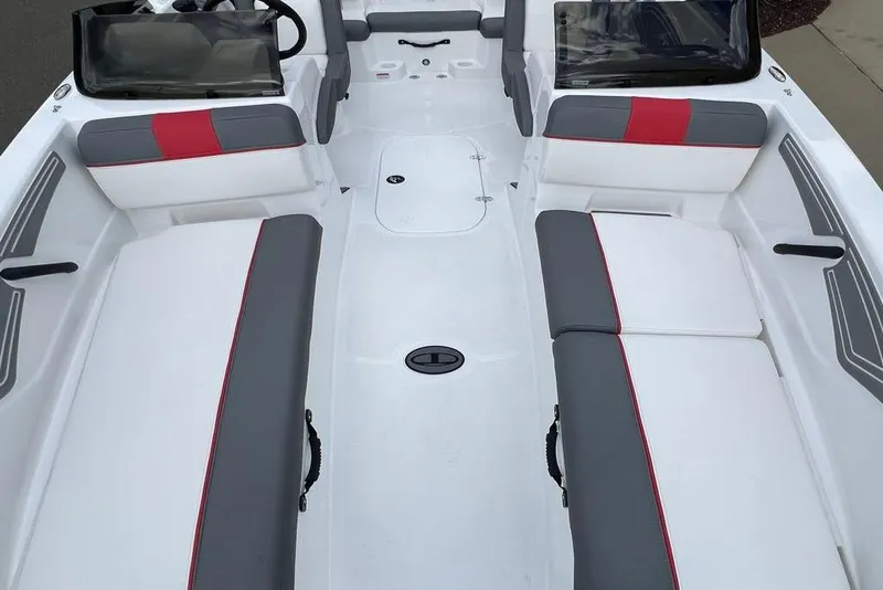 Take your places in the luxurious dual forward lounges, dual midship bucket seats, and the aft 3-across bench. You'll find space for your gear and supplies under the seats and sun-pad cushions, consoles, and the in-floor storage compartment. When you've found a cove you want to explore, the anchor locker, dual aft swim platforms, and telescoping ladder make diving into the waters and getting back into the boat easy.