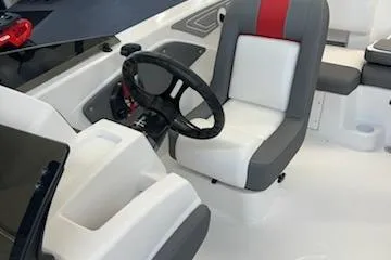 Take your places in the luxurious dual forward lounges, dual midship bucket seats, and the aft 3-across bench. You'll find space for your gear and supplies under the seats and sun-pad cushions, consoles, and the in-floor storage compartment. When you've found a cove you want to explore, the anchor locker, dual aft swim platforms, and telescoping ladder make diving into the waters and getting back into the boat easy.