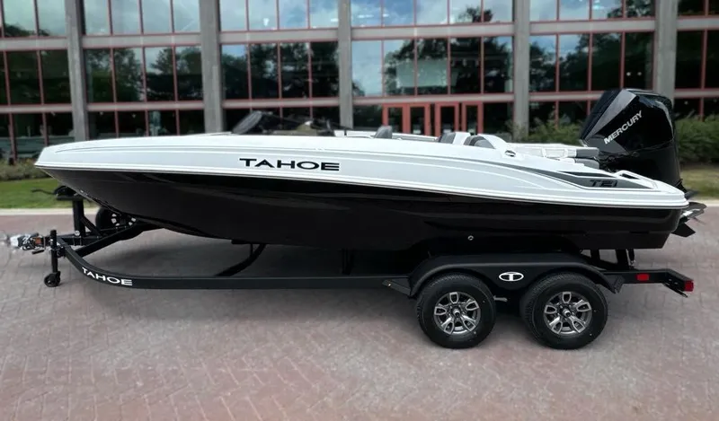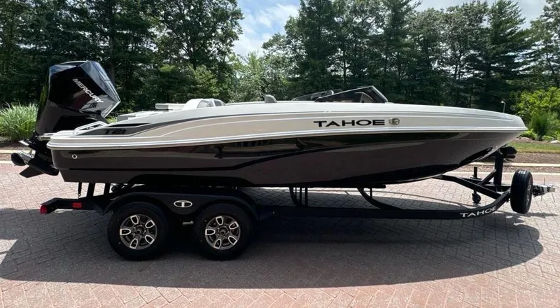 The 2025 TAHOE® T21 comes standard with a 150hp Mercury® XL Pro XS® FourStroke outboard motor and has a recommended maximum 200hp rating. This model is packaged with a trailer.
