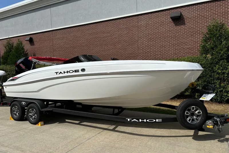 The 2025 TAHOE® T21 comes standard with a 150hp Mercury® XL Pro XS® FourStroke outboard motor and has a recommended maximum 200hp rating. This model is packaged with a trailer.