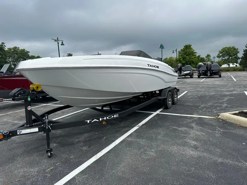 The 2025 TAHOE® T21 comes standard with a 150hp Mercury® XL Pro XS® FourStroke outboard motor and has a recommended maximum 200hp rating. This model is packaged with a trailer.