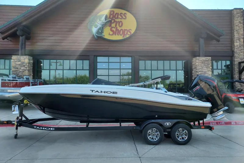 The 2026 TAHOE® T21 comes standard with a 150hp Mercury® XL Pro XS® FourStroke outboard motor and has a recommended maximum 200hp rating. This model is packaged with a trailer.
