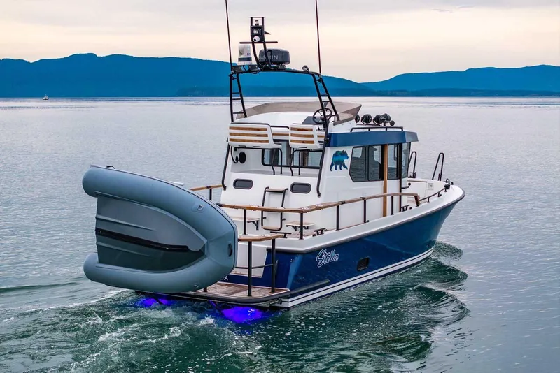 This 2024 Targa 27.2 Flybridge is very clean, and has been well maintained throughout its one season on the water. A well-equipped, all-weather vessel powered by a single Volvo Penta D6-440/DPI. Comfortably cruise at 29 knots (top speed: 35 knots). It features a fully functional flybridge with dedicated helm, and a clean, modern pilothouse with dual 16" Garmin glass cockpit displays. Built for confident cruising in seas as they truly are, it is outfitted with bow thruster, Zipwake trim tabs, diesel heat, hot water, inverter/charger system, advanced Garmin electronics including radar, AIS, FLIR night vision, and IP camera, plus underwater and courtesy lighting throughout. A Highfield Ultralight tender with Torqeedo electric outboard on Weaver davits completes this turn-key Targa, offering capability, comfort, and refinement for year-round boating.