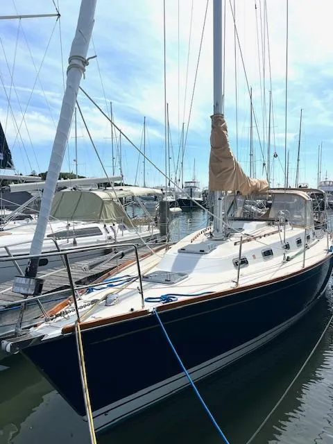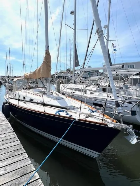 Price reduced 1/31/25 . Serious Seller. The Tartan 4100 is a well respected cruising design built to extremely high standards. Her layout affords two staterooms, a spacious main salon, large L-shaped galley, and a navigation area, all in a beautiful satin varnished cherry interior. The boat's performance under sail is impressive with a glowing review by designer, Bob Perry. On deck, lines are accented by a moderate amount of varnished teak, s.s. ports, deck hardware/fittings as well as her beige dodger cockpit Bimini and canvas, The blue hull and double white water line are stunning. The large T-shaped cockpit allows ample seating, tremendous visibility from behind the pedestal wheel, and protection from the elements. Relentless has been lightly used the last eight years and is now available for sale. With recently upgraded sails and continuously yard-maintained, this vessel offers a solid platform to begin your cruising adventures. Slip for the 2025 season in Mystic CT is available and included.
