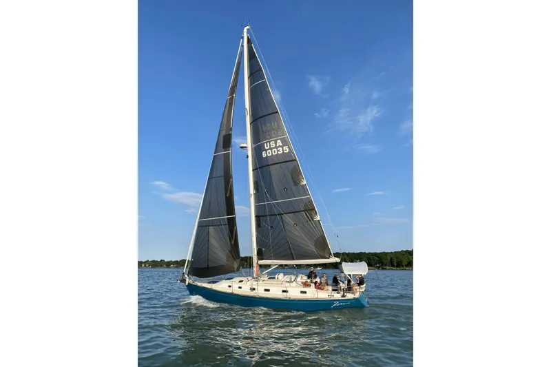 The yacht features a spacious two-stateroom, two-head layout, offering plenty of comfort for family cruising or hosting guests. The canvas package, including the dodger, was recently replaced, and the exterior teak was refinished last winter, presenting beautifully. A brand-new jib leads a well-cared-for sail inventory, and the boat has been stored in heated indoor storage every off-season, ensuring excellent long-term preservation. This fall, it received a fresh bottom paint recoat and complete professional detailing-truly turnkey and ready to sail.