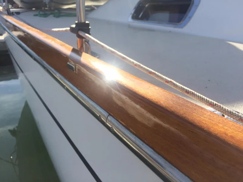 Beaming reflections from her glossy white gelcoat and gleaming brightwork create a stunning first impression.