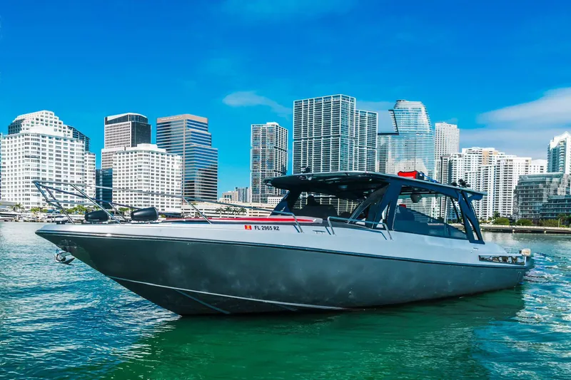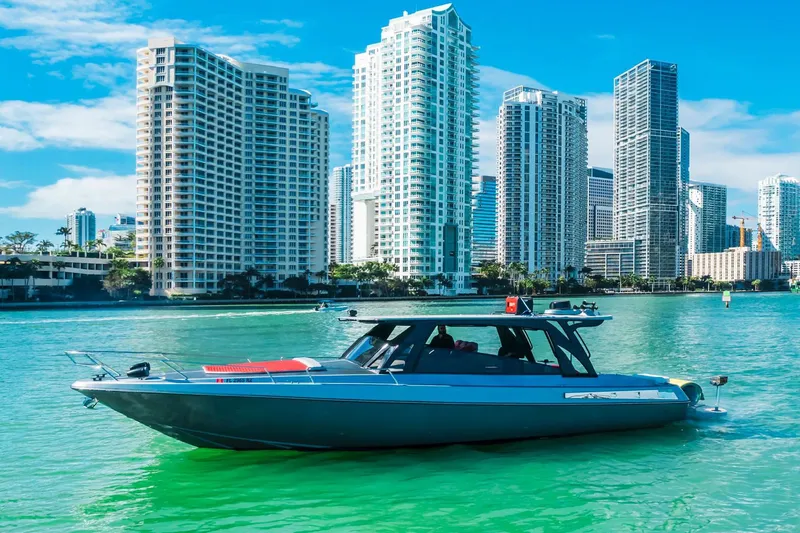 Built by Tempest Marine in Miami's legendary "Thunder Boat Row", the 42 Sport Yacht is a sleek, Euro-style day cruiser prized for its T-Torque surface-piercing propeller drive. This, paired with the deep-V hull, delivers impressive offshore handling and speed.
