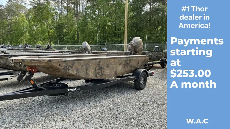 Use our boat payment calculator to estimate monthly payments for 2025 Thor Lake Hammer 1754 1754 TIMBER. Enter your down payment, choose a loan term, and adjust the interest rate to see an instant payment estimate — ideal if you're calculating boat payments before you enquire. Wondering how much does a Deck cost in today's market, or how much does a Thor cost for similar models? This boat financing calculator helps you compare scenarios in seconds, whether you're considering used boat financing or a new purchase.