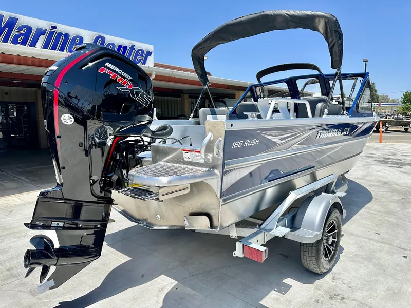 2024 Thunder Jet 186 Rush in Blue with Gray interior. Powered with a Mercury 115HP Fourstoke! Options include: 2-Bank Automatic Battery Charger, 2/3 Hull Side paint, 6' Stern Rails w/ Downrigger Mounting Pads, Additonal Dual USB Port, Aluminum Prop & PDI w/ Battery, Anchor Roller w/ Jamb Cleat, Bed rails w/ Filler cushion, Bow Livewell Pump Kit, Bow Locker w/ Drain, Bow Mount Trolling Motor Prep Package, Bow Rails, Cockpit Courtesy Lighting, Cockpit Side wall Rod Holders (3) Port and Starboard, Forward in-Floor Storage Compartment, Graphics Upgrade Pkg for 2/3 or Full Paint, Hydraulic Steering w/ Helm, Locking Glove Box, Net Holder for Port and Starboard, Passenger Side Wiper, Shock Absorber Seat Pedestal for Helm and Passenger, Smartcraft Gauge Upgrade, Starboard Swim Step w/ Under mount Ladder, Stereo w/ 2 Speakers, Trailer, Upgraded Fish Seats (Helm and Passenger) Wash Down.* Price shown is Before Freight, Prep, Tax, DMV and other fees. ** All incentives from factory included in pricing. WE WANT YOUR BOAT!!!Call us or stop by 7 days a week for more information at 559-432-2277