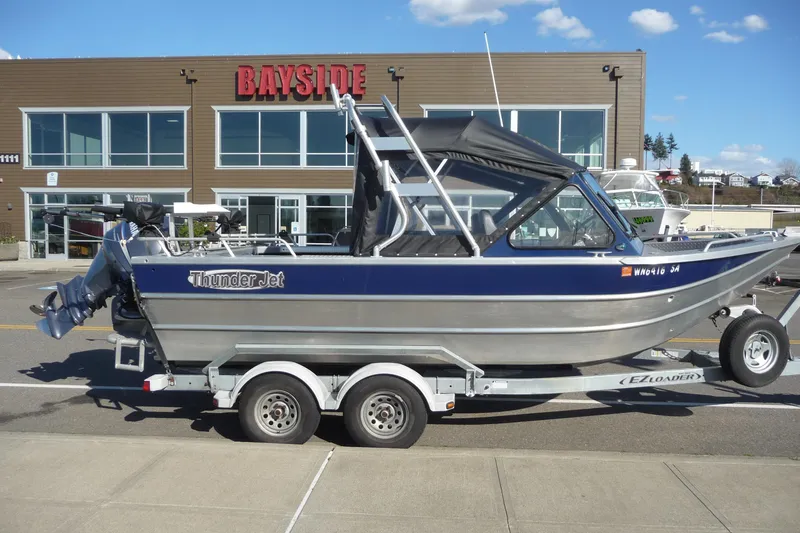2013 Thunder Jet 21' Luxor with 150hp Yamaha 4 stroke with 571 Hours and 400 of those hours are under 2,000 RPM. Yamaha T9.9 tiller kicker with Garmin Reactor 40 auto Pilot, powertilt, electric start. Includes late model Garmin GPS/Fishfinder, 2 Scotty High performance electric downriggers, suspension seats, dual wiper, dual battery with switch, stainless prop, Pioneer stereo, 2 defrosters, Canvas is beautiful, brand new including isinglass windows. This is a well built aluminum fishing/crabbing boat with high gunnels, Offshore outboard bracket and a nice deep V for great ride! Includes Galvanized EZ Loader, bunk Trailer.