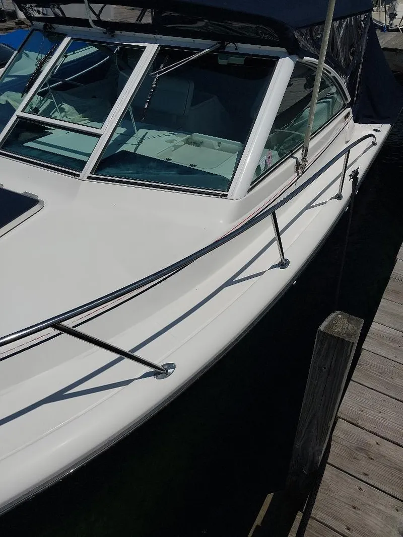 The Tiara 2900 Coronet is considered an entry-level boat. It's a model for those buyers looking to step up from an outboard or stern drive boat to one with inboard power. The 2900 Coronet has 114 square feet of cockpit space.The 2900 Coronet is the modern version of a classic day boat. The swim platform is integral to the hull; the transom is canted slightly inboard for an attractive styling touch. The overall appearance is in keeping with the timeless Tiara look. The 31-foot 7-inch hull has 114 square feet of cockpit space with standard seating for 6 to 8 adults. Add options and that number can go up to 12. Although perfect for cruising inland lakes, the 2900 Coronet has the right stuff for heading out into the big water as well. Twin inboard power, an 11-foot 4-inch beam, and large 200-gallon fuel capacity, not to mention the trademark Tiara structural integrity, make the 2900 Coronet a boat that will get passengers there and back safely. The 2900 Coronet also contains basic cabin amenities, including a 6-foot 4-inch forward berth, a mini-galley with microwave and sink, a private head with a vanity, a dinette, a hanging locker, and plenty of other storage space. These features easily qualify the boat to serve as a second home. The cockpit configuration of the 2900 Coronet is quite versatile and is made for entertaining. The standard boat comes with a helm seat forward that has a built-in wetbar. Behind it is an aft-facing bench. There's also an L-shaped lounge to port. Transom seats for both the port and starboard sides of the centerline access door are available and come with seat covers. Owners may also opt for the cockpit table that converts into a sunpad. It can be ordered with either a starboard transom seat only or one for both sides. An L-shaped lounge is to port of the wide cabin entry. The helm features a wood steering wheel.