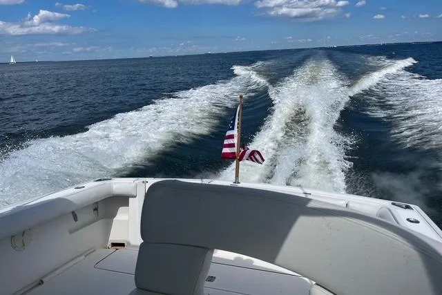 This vessel is designed with an impressive layout that provides substantial deck space, making it suitable for both entertaining and fishing activities, attributed to its notable 11'4" beam. The cabin is characterized by comfort and elegance, replete with a variety of features, and accommodates up to four adults for overnight accommodations. This boat represents an optimal choice for discerning buyers seeking a high-end cabin cruiser capable of offshore fishing and brief overnight excursions.