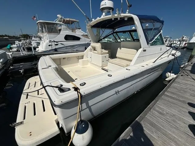 Introduced in 1992, the Tiara 3100 Open is a complete update of the original 3100 Open built from 1979 - 1991. Her reworked hull features a sharper entry, additional transom deadrise, greater bow flare for a drier ride, and prop pockets to reduced shaft angles. Significantly, the 3100 Open also has a bi-level Cockpit layout that allowed for the installation of her Cummins diesels in an enlarged engine compartment. Tiara has always been a conservative builder and it's no surprise that the new 3100 looks a lot like the original - Basically a no-glitz Express with top-quality systems and hardware. The slightly enlarged interior of the new 3100 has a bit more headroom than her predecessor, and there's also a bigger U-shaped dinette. Additional updates include increased fuel, a Tilt-away Helm Console, recessed trim tabs and an in-deck fish box and live well in the Cockpit. Note that a transom door became standard in 1994.
