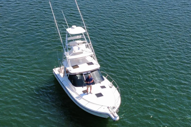 Powered by twin Cummins QSB 5.9, 355 HP with approximately 1800 hrs. Cruise speed of 29 knots with a wide open throttle speed of 32 knots.