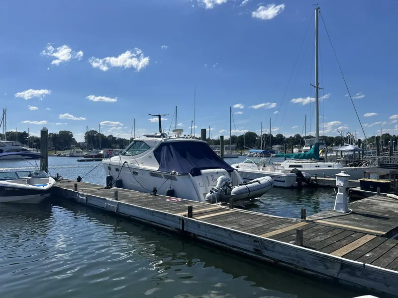 The Swallow is a well-maintained Tiara Sovran 3500. She is powered by twin Volvo IPS 400 Pods with joystick control. Her ride is smooth and dry. The raised cockpit provides excellent visibility all around the vessel. The nearly 13' beam provides an extremely spacious cabin for a 35 footer.
